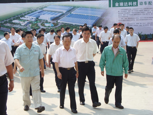企业总经理江金子先生首先汇报了项目的建设情况:一期项目完成投资2.5亿元,6万㎡厂房已改扩建成投产;二期项目厂房5万㎡主体已封顶,7月底全面竣工。项目达产后,可新增销售5亿元。随后,江总陪同王市长及各级领导参观了企业生产车间。王市长在参观过程中,充分肯定了企业的规模、产业化管理及现场管理水平。并鼓励企业进入资本市场,尽快上市。